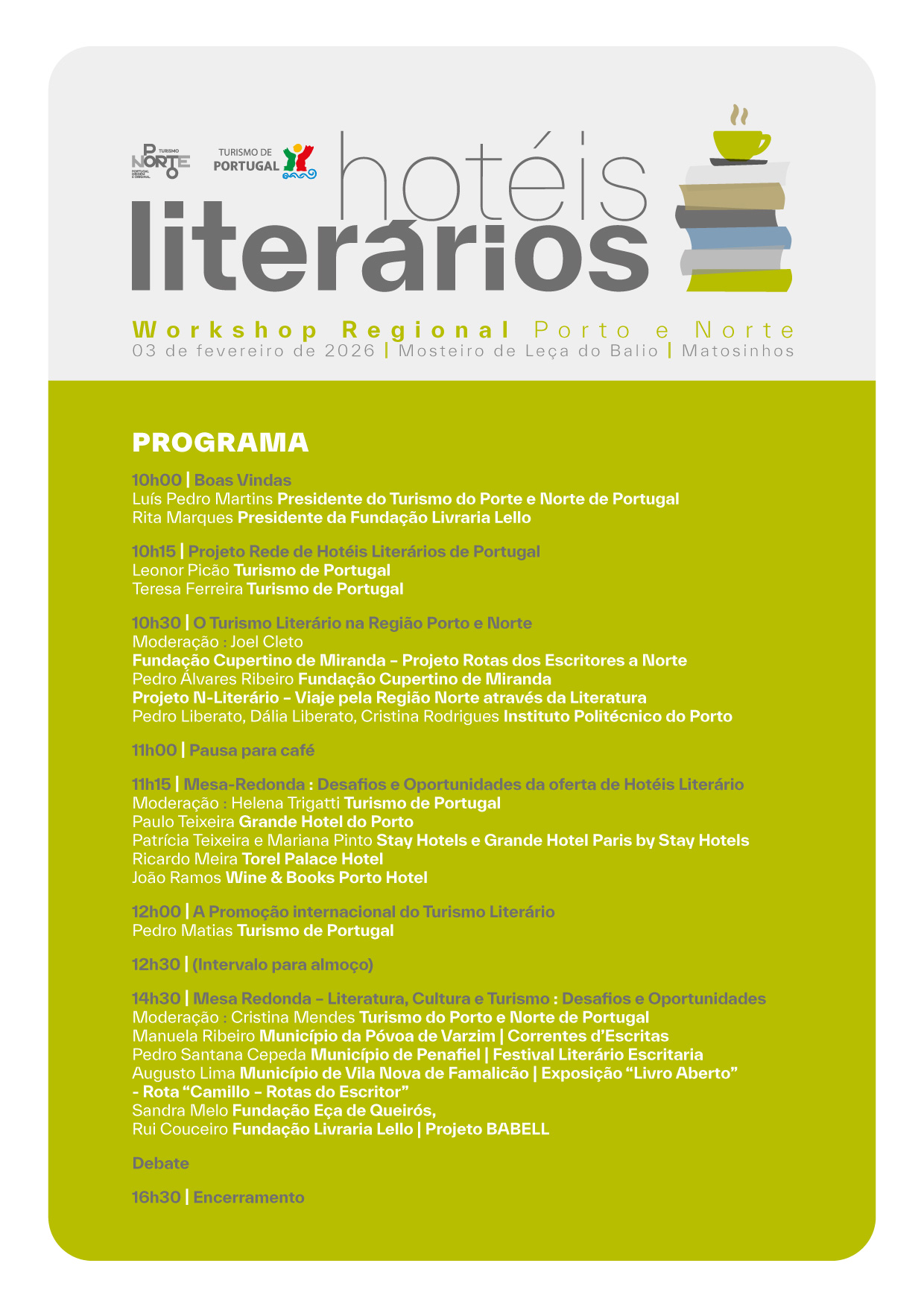 O Turismo do Porto e Norte de Portugal, no âmbito do projeto da Rede de Hotéis Literários de Portugal, em estreita colaboração com o Turismo de Portugal e com as Entidades Regionais de Turismo, vai realizar o primeiro Workshop Regional.
